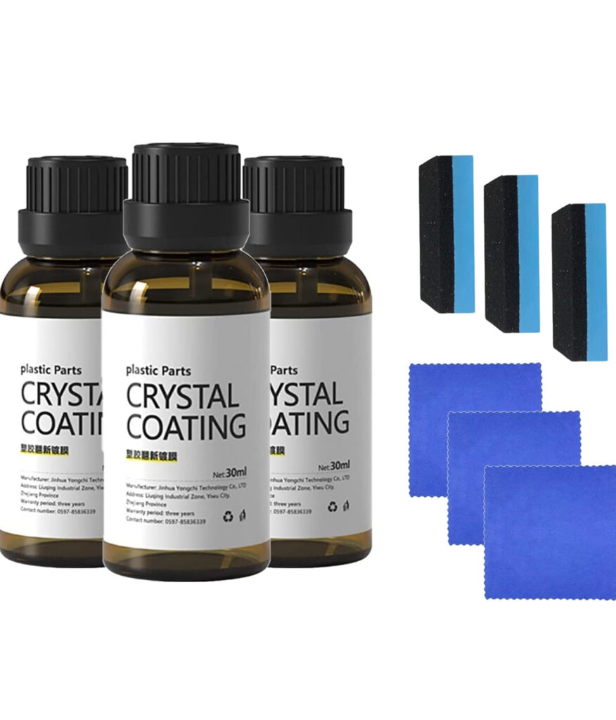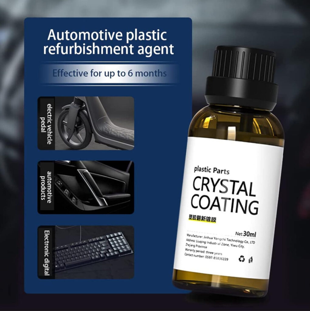 Restoring your car’s plastic parts has never been easier! With our Plastic Parts Crystal Coating, you can bring back the shine in just 2 quick steps: