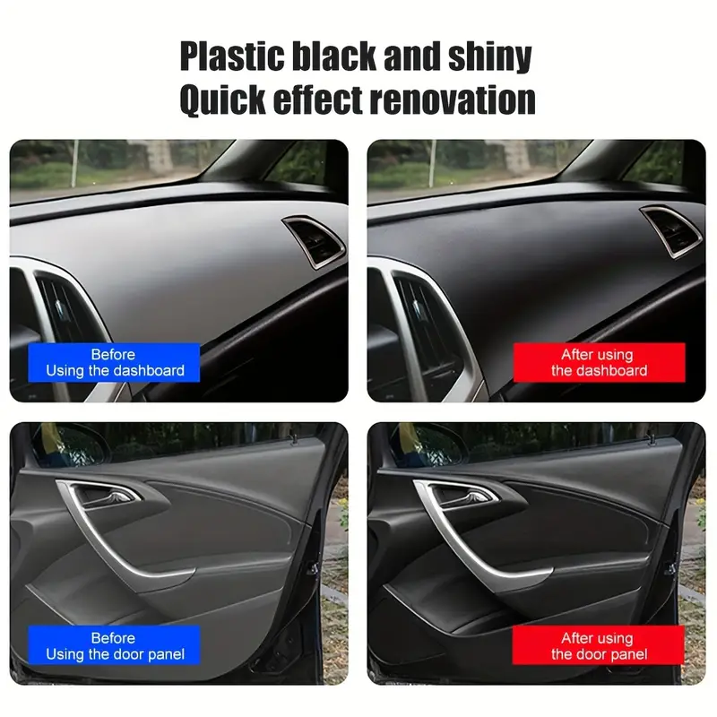 Are your car’s plastic parts looking faded and worn out? Say goodbye to dull, old surfaces and hello to a shiny, brand-new look with our Plastic Parts Crystal Coating! With just one easy application, our advanced Plastic Parts Refurbish Agent works wonders on all exterior and interior plastic parts of your car. Simply apply the formula to the sponge and wipe — it’s that easy! Watch as your car’s plastic surfaces transform from dull and faded to glossy and vibrant.