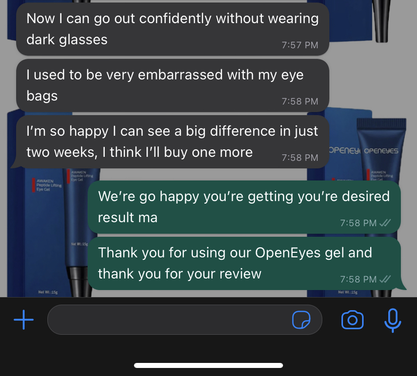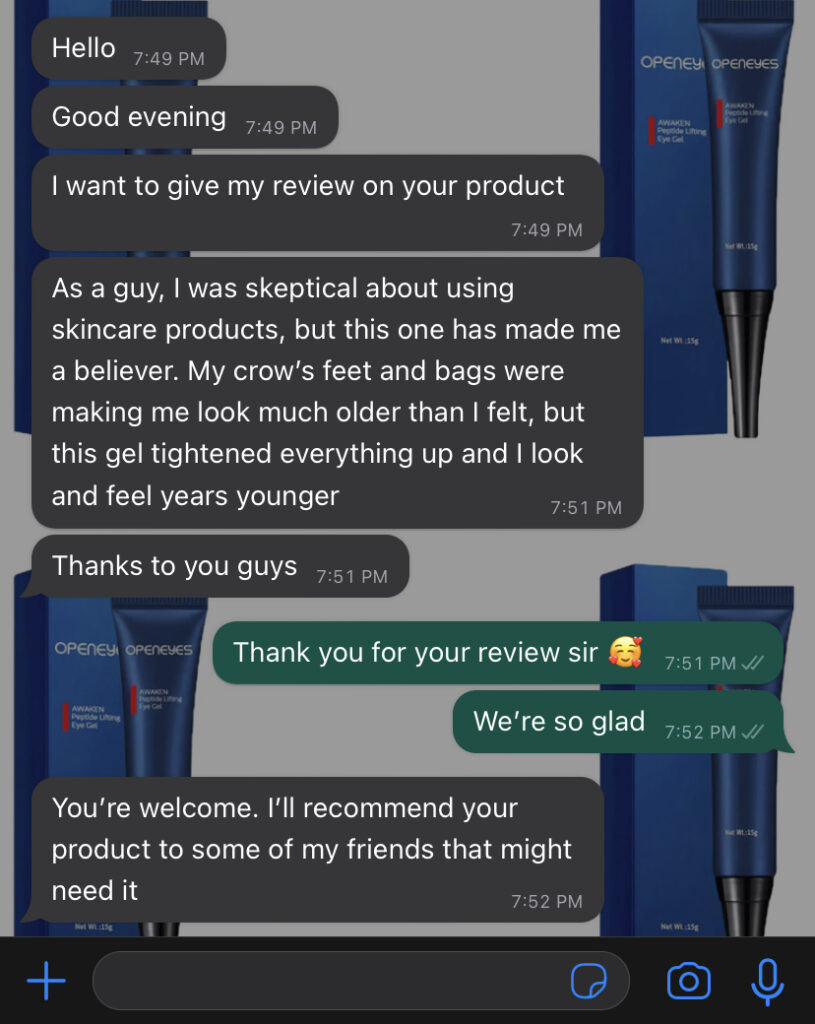 Imagine waking up each morning and feeling confident and refreshed, knowing that your under-eye area looks smooth and bright. With Openeyes, that can be your reality. Our customers rave about the dramatic improvements they see in their under-eye area after just a few weeks of regular use. And because our formula is so gentle, you can use it every day without worrying about dryness or irritation.